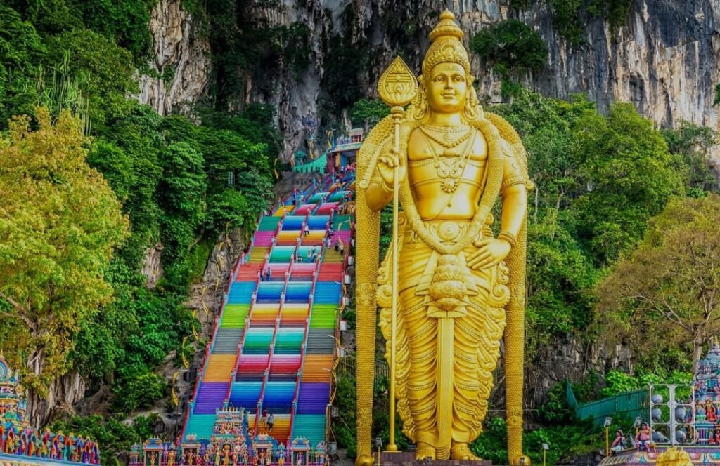 Berlokasi sekitar 15 km dari pusat kota, Batu Caves merupakan gua batu kapur berusia 400 juta tahun yang menjadi tempat ibadah umat Hindu. Daya tarik utamanya adalah patung emas Dewa Murugan setinggi 42,7 meter dan 272 anak tangga warna-warni yang ramai dikunjungi saat festival Thaipusam.