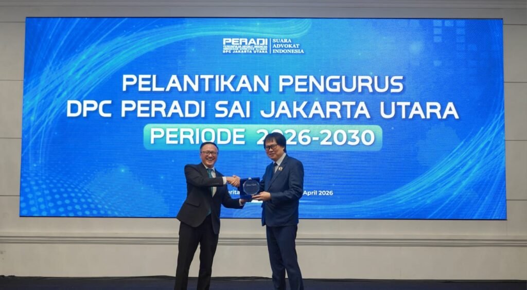 Apresiasi tersebut disampaikan dalam acara pelantikan pengurus DPC PERADI SAI Jakarta Utara periode 2026–2030 yang digelar di The Tavia Hotel, Jakarta, pada 24 April 2026.