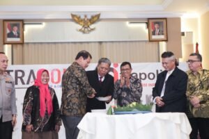 “Momen pemotongan tumpeng sebagai simbol syukur pada peringatan HUT Mitrapol dan Mitrapolitika, disaksikan oleh jajaran pimpinan dan tamu kehormatan.”