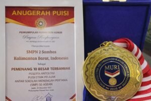 Sambas,Naratara.com – Prestasi membanggakan kembali ditorehkan dunia pendidikan di Kabupaten Sambas. SMP Negeri 2 Sambas berhasil meraih penghargaan Museum Rekor Dunia Indonesia (MURI) sebagai peringkat 8 atau masuk 10 besar peserta Puisi Etnik Pelajar Nusantara tingkat ASEAN yang diselenggarakan oleh Perruas ( Perkumpulan Rumah Seni Asnur ) pada Desember 2025.