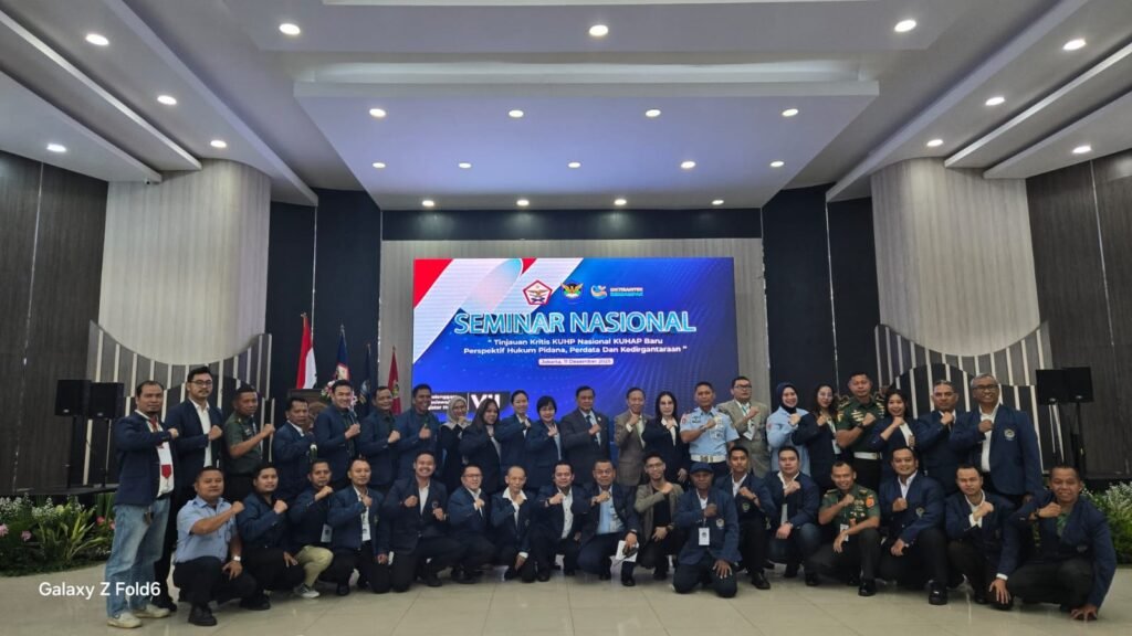 Jakarta,Naratara.com – Program Pascasarjana Magister Hukum Universitas Dirgantara Marsekal Suryadarma ( Unsurya ) Angkatan VII menyelenggarakan seminar nasional bertema “Tinjauan Kritisi KUHP Nasional & KUHAP Baru Perspektif Hukum Pidana, Perdata, dan Kedirgantaraan” di Balai Prajurit Ardhya Loka, Halim Perdanakusuma, Jakarta Timur, Kamis (11/12/2025). Kegiatan berlangsung secara hibrida dan menarik perhatian mahasiswa serta peserta dari berbagai wilayah.